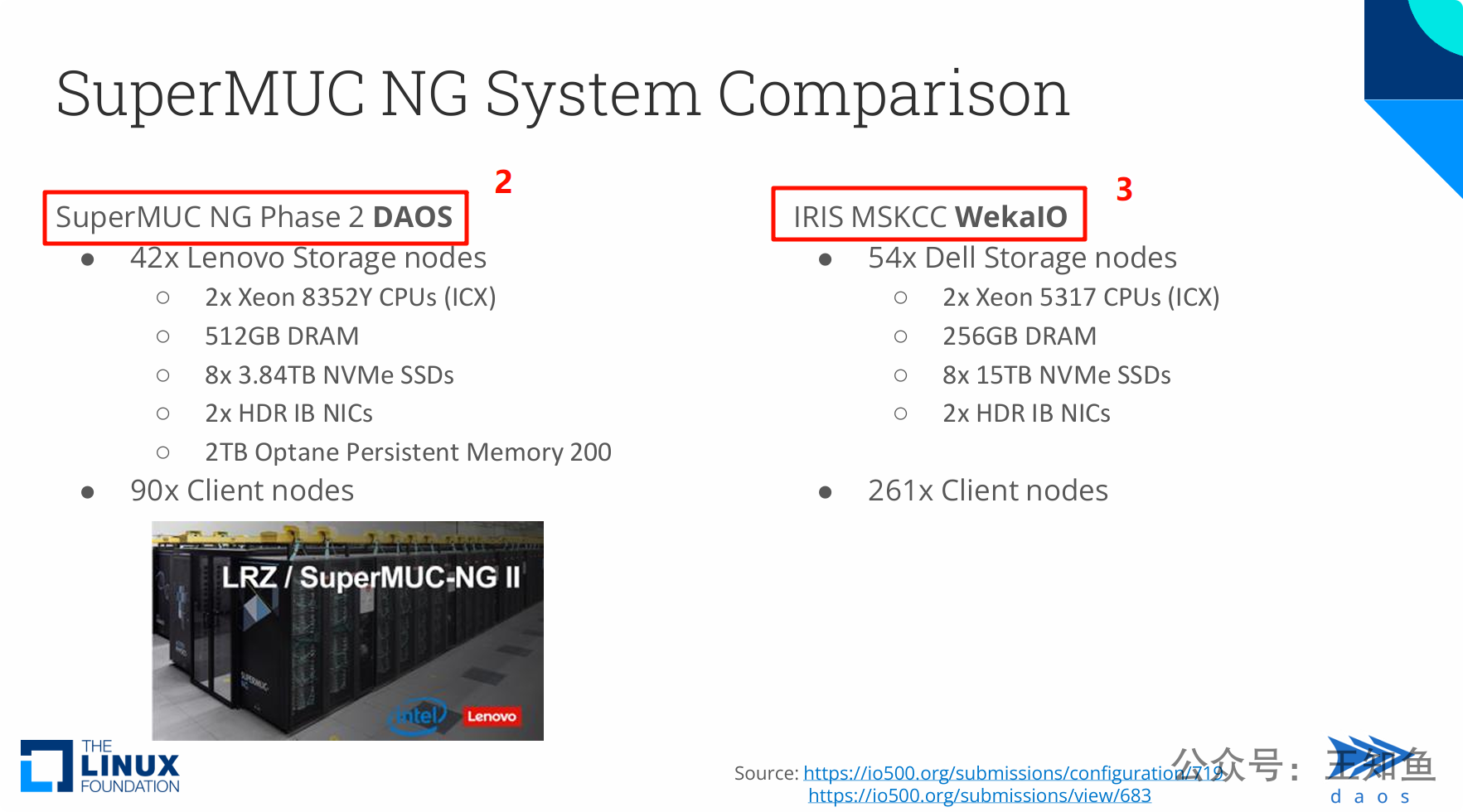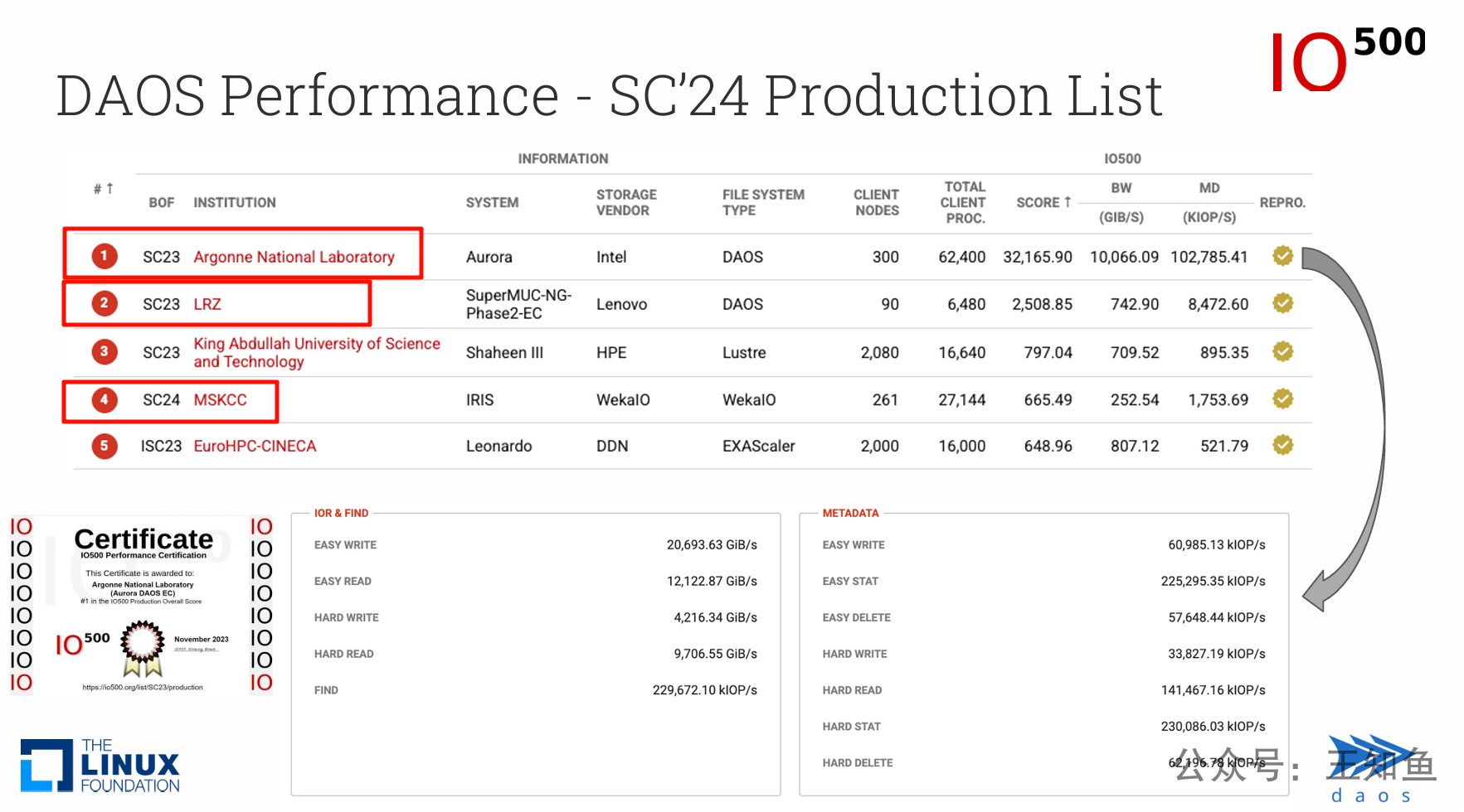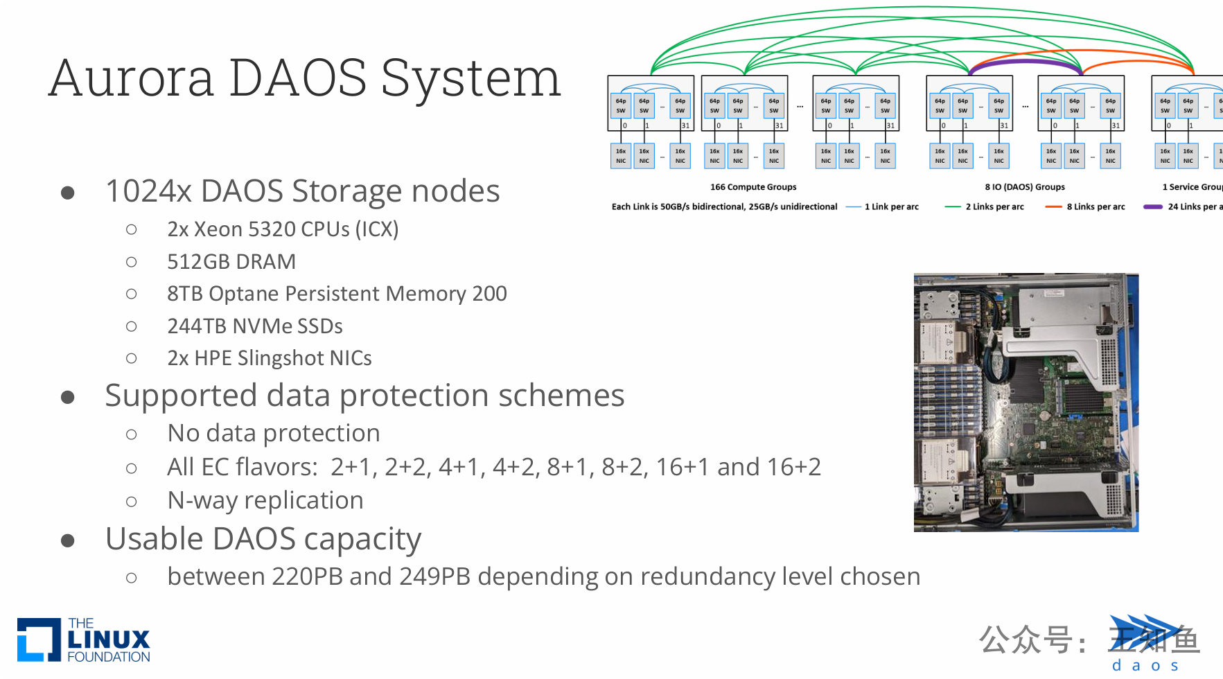 2023: Aurora超算存储系统性能突破 10TB/s。出现了第一个基于ARM架构的DAOS系统。