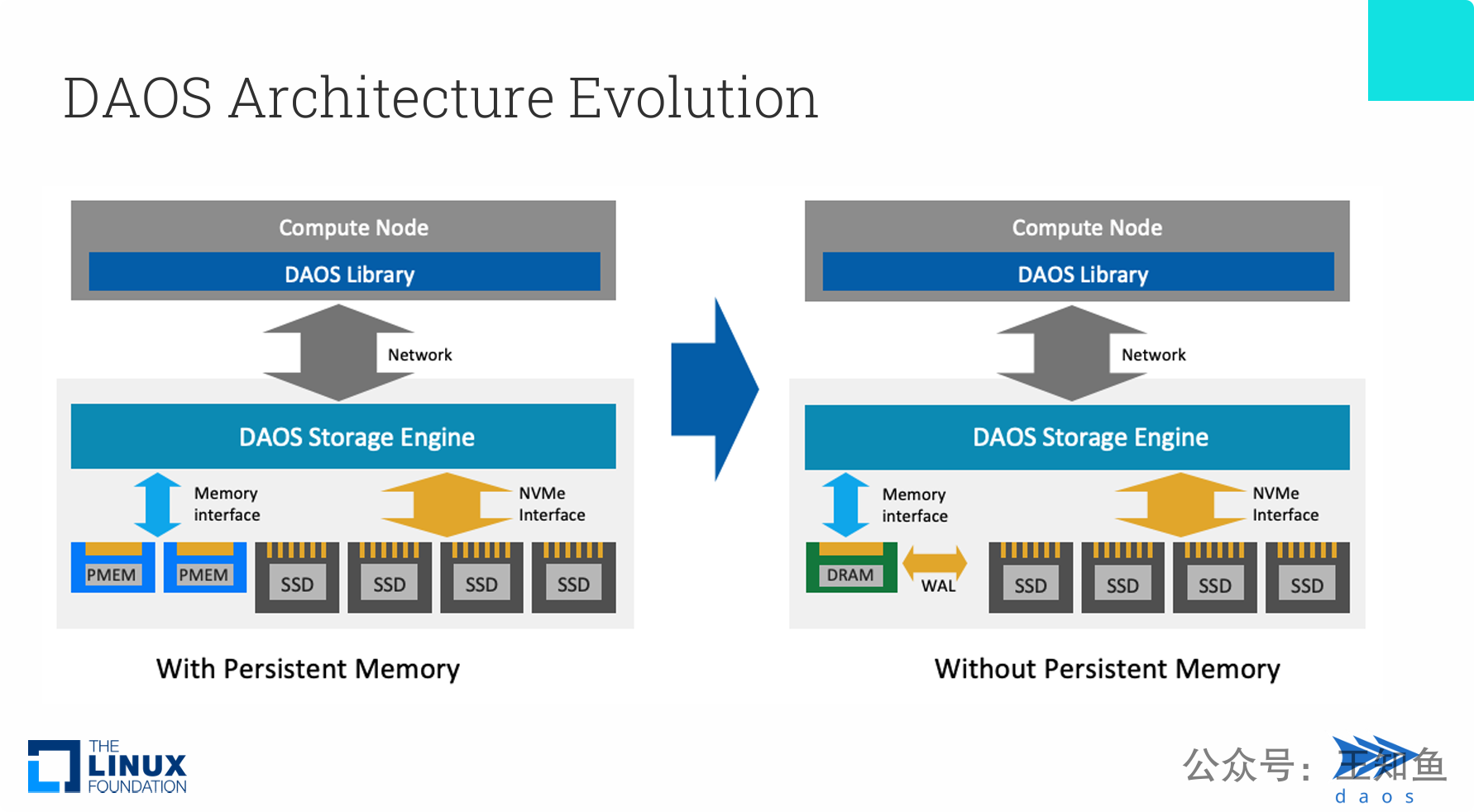 应对硬件生态变化: 此次架构演进主要是为了应对Intel停止其Optane持久性内存业务的重大行业变化。这展示了DAOS项目的技术适应能力和长远生命力。