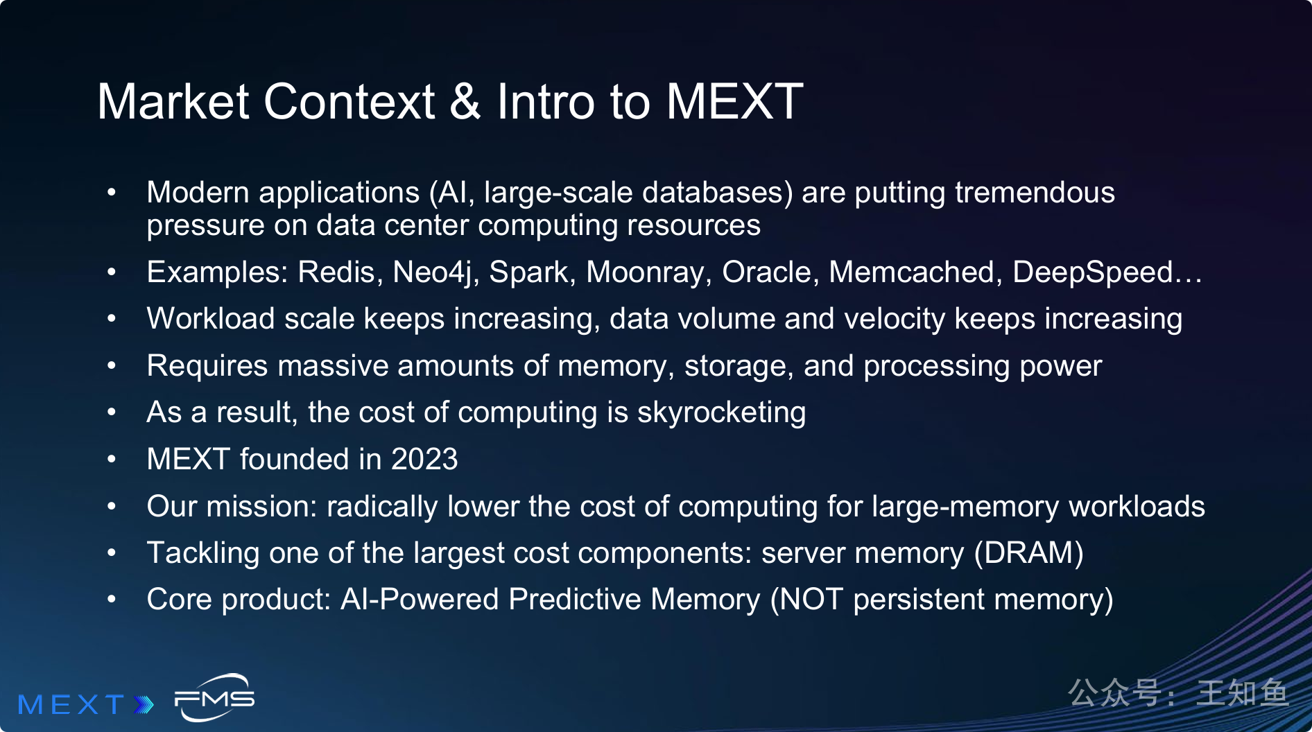核心产品:公司的核心产品是“AI-Powered Predictive Memory”(AI驱动的预测性内存)。这里特别用括号强调“NOT persistent memory”(不是持久性内存),这是一个非常关键的技术区分,表明其产品并非像Intel Optane那样的持久性内存硬件,而更可能是一种利用AI技术来优化易失性内存(如DRAM)使用效率的软件或硬件解决方案。