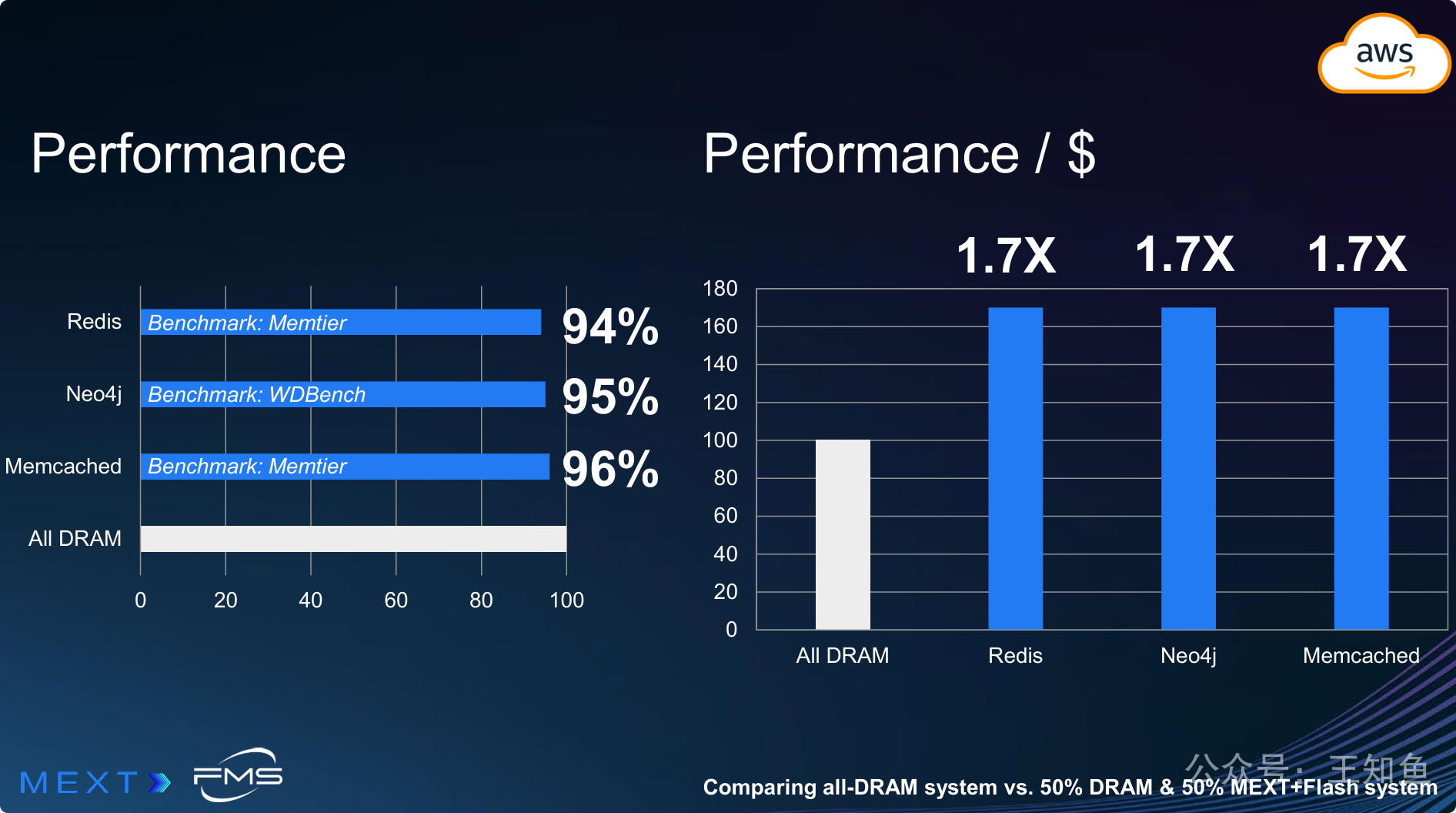 性价比大幅提升:由于硬件成本显著降低,这种“几乎无损”的性能表现带来了巨大的经济效益,使得MEXT解决方案的性价比(单位成本性能)达到了传统纯DRAM方案的1.7倍。