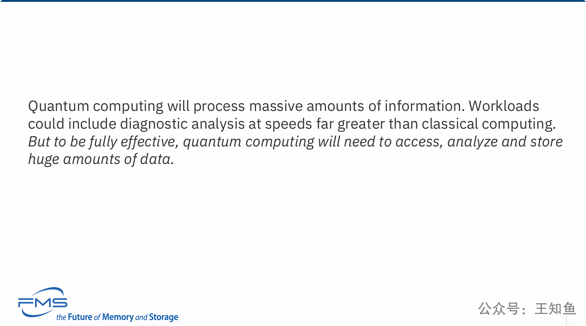 引申: 因此,对于存储行业而言,量子计算时代的到来意味着必须发展全新的内存和存储技术,以满足这一前所未有的需求。这张PPT旨在引出“量子计算对存储提出新要求”这一核心议题。