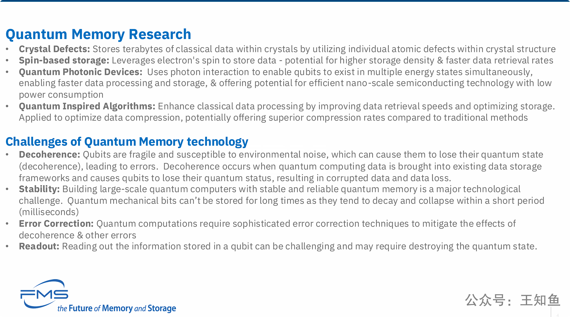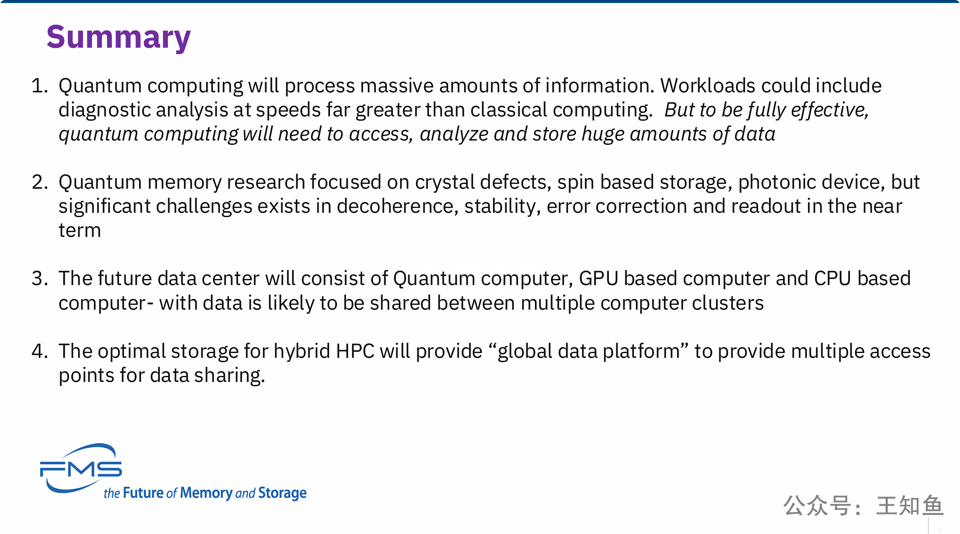 PPT的核心观点是:量子计算的实现和普及,不仅仅是计算本身的突破,更是对底层数据基础设施(即内存与存储系统)的巨大挑战。