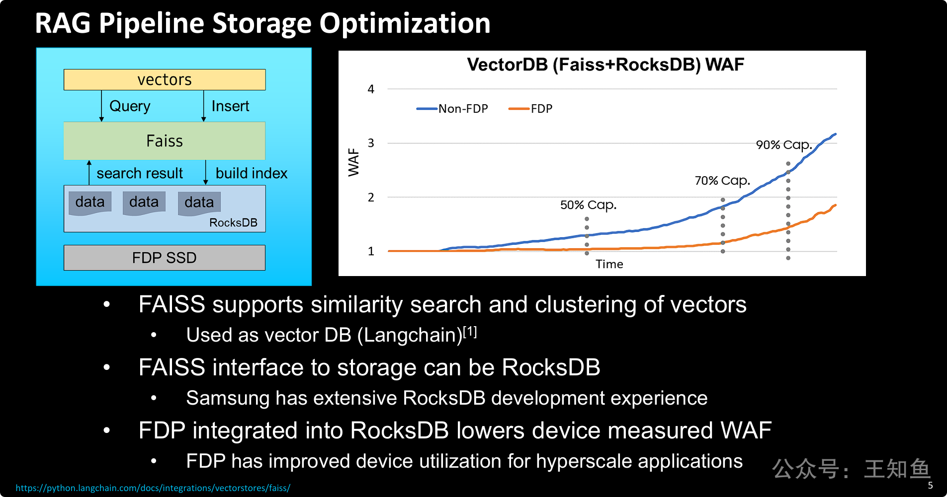 效果验证: 实验数据明确证明,与未使用FDP的方案相比,FDP方案可以将大容量下的WAF降低近一半,极大地优化了存储效率和耐久性。这对于需要处理海量向量数据并进行频繁更新的RAG应用场景至关重要。