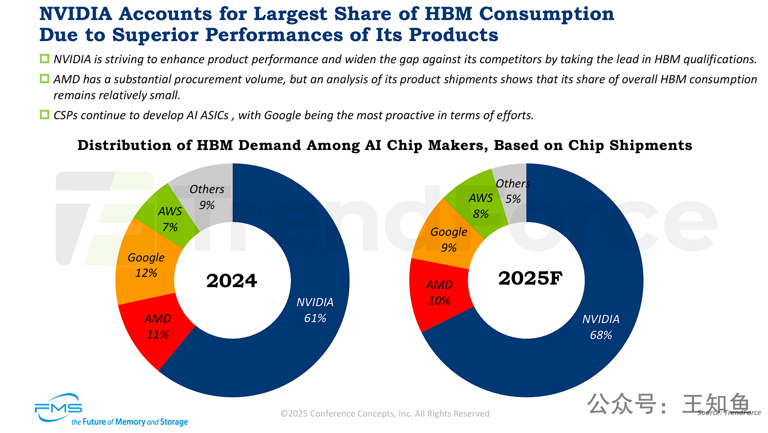 AMD 和 Google 在2025年的HBM消耗份额预计都将有所萎缩。