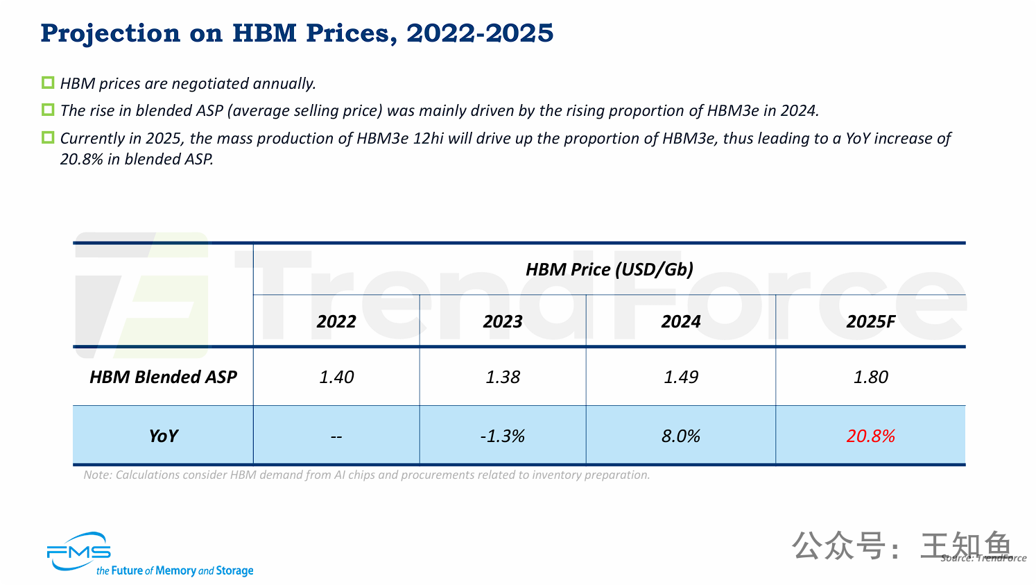 技术复杂度增加: 2025年,HBM3e 12hi(12层堆叠)的量产将成为关键驱动因素。12层堆叠的制造成本和价值远高于8层堆叠,这直接拉高了整个HBM市场的“混合平均售价”(Blended ASP)。